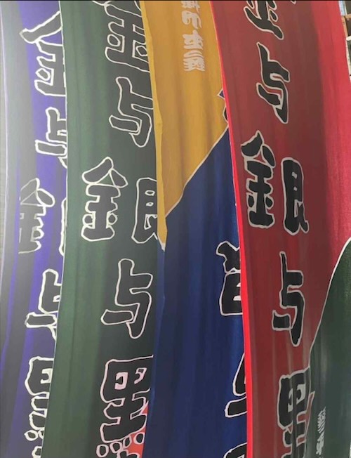 染匠吉野屋と、台湾の書道詩人 何景窗(ホー・チンチュアン)氏によるコラボ作品の制作が進んでいます。香川の伝統工芸品である讃岐のり染を創業時から変わらぬ手法で生み出し続ける琴平町の染匠吉野屋は、四国こんぴら歌舞伎大芝居の幟を第1回から手掛けていることでも知られています。色鮮やかなのぼりと力強い書が琴平の町並みを彩ります。