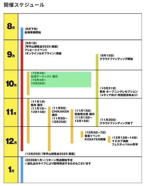 琴平町の有志などによる「琴平山(ことひらやま)博覧会実行委員会」が主催する関係人口型*アートフェス「琴平山博覧会」が、9月からのプレヒート期間を経て、10月4日(土)より本格的に作品の展示をスタートします。