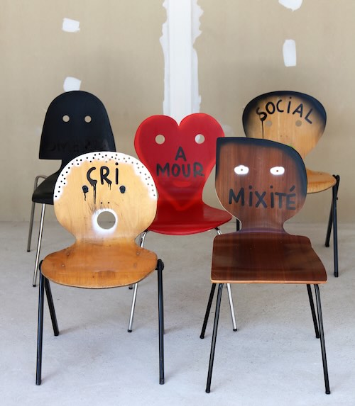 577脚の椅子/市民のための円形議場。デザイナーのクレール・ルナールとジャン=セバスチャン・ブラン(Studio 5.5共同設立者)は、私たちの民主主義の脆弱さに対する応答として、2025年のパリ・デザイン・ウィークで巨大なインスタレーションを発表しました。この作品は、「577脚の椅子」からなる市民の円形議場(アッセムブリー)で、すべて異なる再利用の椅子で構成されており、中古販売サイト「leboncoin(ル・ボン・コワン)」とのパートナーシップにより制作しました。展示は1789年に制定された「人権と市民の権利宣言」(フランス革命初期に国民議会で採択)が保管されているフランス国立公文書館の広大な中庭で開催されました。これらの椅子の一部を使った展示を「DESIGNART TOKYO 2025」で予定しています。
