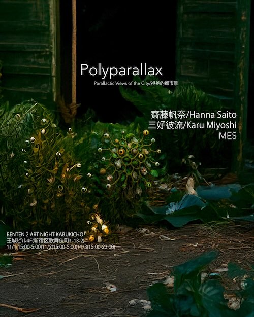 齋藤帆奈・三好彼流・MESによる展覧会「Polyparallax(視差的都市景)」を開催します。三作家の実践のなかでも特に、非人間的なスケールに支えられつつ、人間の集いと交流の場でこそ立ち現れていく表現を紹介します。