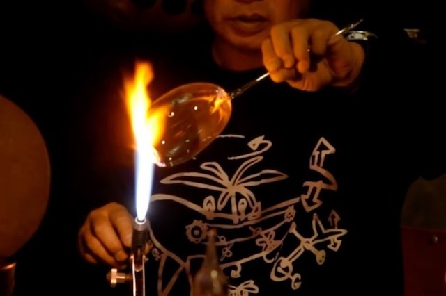吹きガラスの技法を用いて、雲形オブジェを作ります。