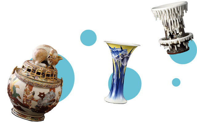 本企画展では、最先端技術で3Dデータ化した眞葛焼を色々なサイズの3Dプリントで作成。実際に触ってお楽しみいただけます。思わず「でかっ」「ちっちゃ」と口にしてしまうような少し変わった展示です。
