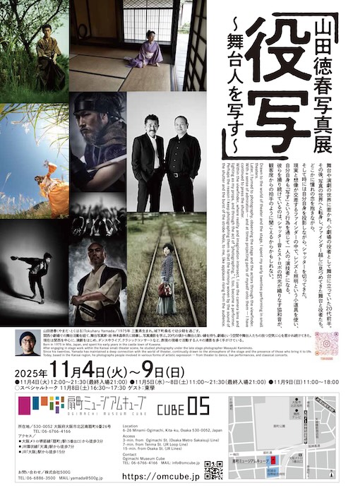本展では、山田がこれまで関西小劇場で撮影してきた俳優や劇団員のポートレート作品を展示します。舞台人たちの「演じる瞬間」や「素の表情」を通して、舞台の内と外にある“生きた表現”を写し撮ります。