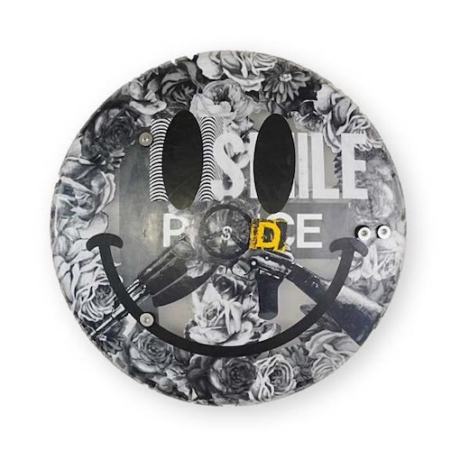 本アート展ではジミー・コーティーの代表作である「SMILEY RIOT SHIELDS」をはじめ、政治、戦争、パンデミック、環境問題を訴えた作品を展示します。自身もファンと公言する世界的アーティスト河村康輔や、アーティストCali Dewitt(カリ・デウィット)とのコラボレーション作品なども併せてご紹介します。