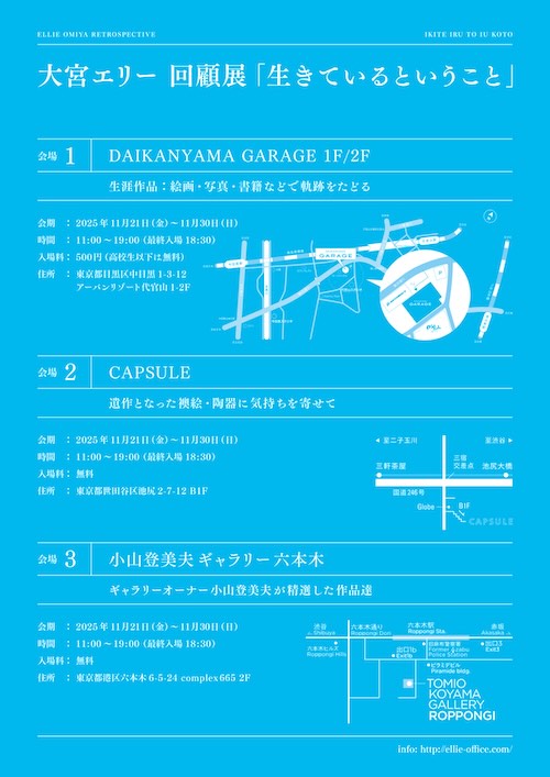 W'UP★11月21日~11月30日 大宮エリー回顧展「生きているということ」 DAIKANYAMA GARAGE、CAPSULE、小山登美夫ギャラリー六本木
