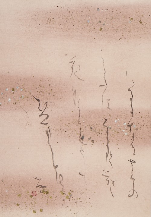 西行は、月に寄せる思いを数多くの和歌に託しました。その静謐な光と、心の奥に響く余情は、時を超えて私たちに語りかけてくれます。高木氏は、かな書のしなやかな線と余白の妙をもって、西行のその詩情を現代に映し出しました。「ありのままの自分で書こう、そう思い、作品に精一杯立ち向かいました。すべての作品、こんな景色を描きたいと願い筆を執ったものです。まだまだ途上ですが、皆様にはその景色を思い浮かべながらご鑑賞いただければ幸いです。」と高木氏。