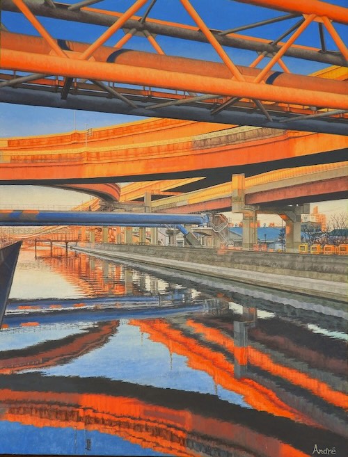 「加平夕景、北へ続く道」(2024年、キャンバスアクリル、15号P)