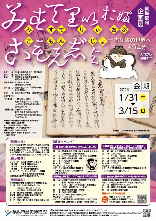 申込 当館webサイト https://www.rekihaku.city.yokohama.jp/koudou/see/event/eventlist/kikakuten_event/20260308_komonjokouenkaib/