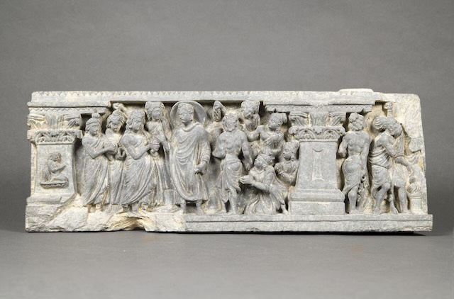 - 仏伝浮彫「三迦葉の帰仏」 ガンダーラ 2~3世紀 龍谷大学