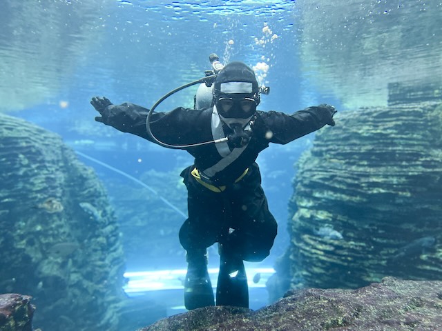 「うみがたり大水槽」に「忍者ダイバー」が出現し、魚にエサを与えます。バブルに身を隠す忍術も披露します。