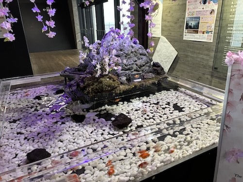 物語の導入を想起させる水槽を3階ロビーに設置します。物語の舞台「Umigatari-Castle」を表したテラリウム水槽には、上越の雪景色の中にそびえる城、そしてその堀には忍者をイメージする黒色メダカが泳ぎます。