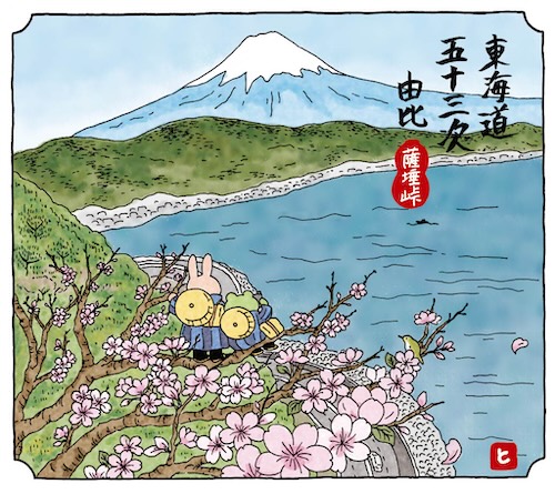 歌川広重「東海道五拾三次之内」とやまむらともよ「蛙と兎の東海道五十三次」