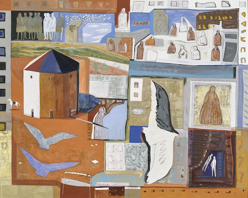 2010年代中頃、画風はふたたび具象に転じました。若い頃から足繁く訪れた瀬戸内海の風景のなかに少女、鳥、海景など愛着深いモチーフの数々が、丹念な筆致でモンタージュされた作品群は、人生の来し方と行く末を確かに見据えた、画家の到達点といえるものです。さまざまな出会いと試みによって変化を遂げてきた画家の歩みを、現在に至るまでたどります。