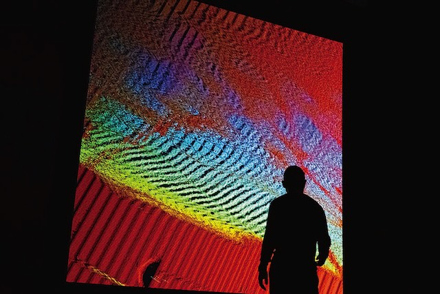 宇宙や量子の研究に基づくデータ可視化・可聴化の試みを、ダイナミックな映像インスタレーションとして展示します。また、導入展示では、戦後からEXPO'70の前後にかけて、科学と芸術の両域において先駆的活動を展開した科学者・芸術家らの貴重な資料を、現在に重なる特異点として紹介します。