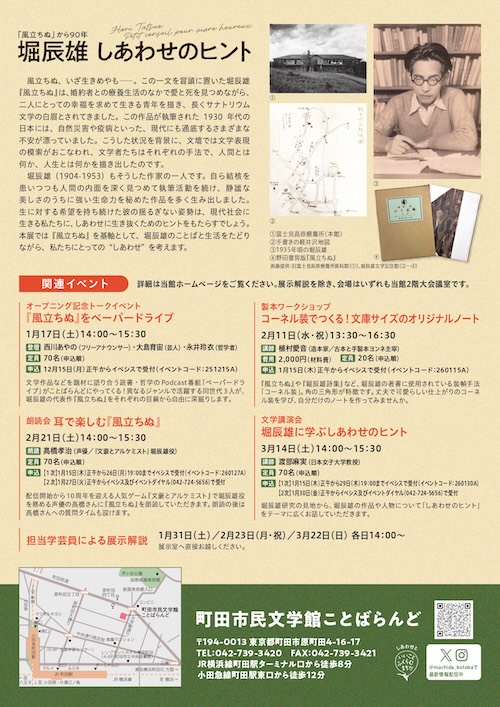 W'UP★1月17日~3月22日 「風立ちぬ」から90年 堀辰雄 しあわせのヒント展 町田市民文学館ことばらんど(東京都町田市)