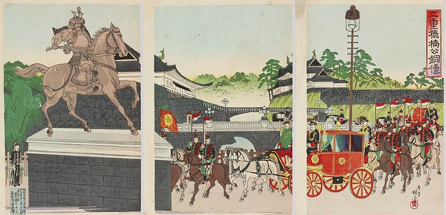 - 二重橋楠公銅像、楊斎延一画、1899 年、ボン浮世絵コレクション、慶應義塾図書館
