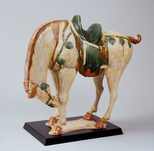漢から唐時代にかけて墳墓に納められた作品を展示いたします。色鮮やかな貴婦人や躍動感あふれる馬など、長き時を超え、当時の風俗やシルクロードを介した東西の文化交流を活き活きと今に伝える個性豊かなやきものをご堪能ください。