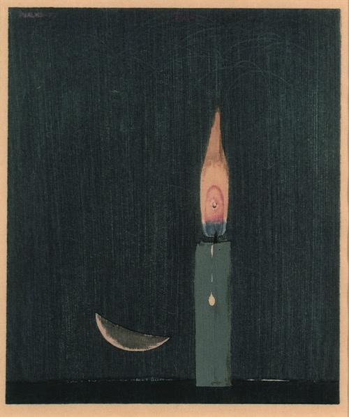 - 清宮質文 《深夜の蝋燭》 1974年 木版/紙 17.8×15.0cm 茨城県近代美術館 照沼コレクション