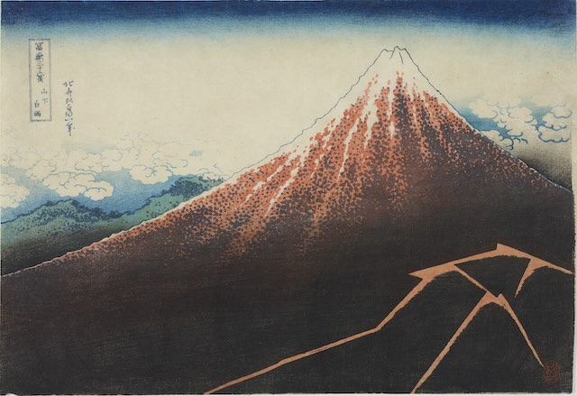 本展は、2024年に井内コレクションより当館に寄託された、北斎の『冨獄三十六景』(1830-33年頃)を初披露する展覧会です。北斎の代表作である本シリーズ全46図を一挙に公開します。さらに、特に高い人気を誇る「神奈川沖浪裏」と「凱風快晴」については、それぞれ異なる摺りをもう1点ずつ併せてご紹介します。「神奈川沖浪裏」は、現存する中でも類を見ないほど摺り・保存状態に優れた一枚が加わります。また、“赤富士”として知られる「凱風快晴」は、極めて希少な色変わり版、通称“青富士”も特別に展示します。これら全48点を、モネをはじめとする西洋美術コレクションを誇る当館でご覧いただけるまたとない機会となります。