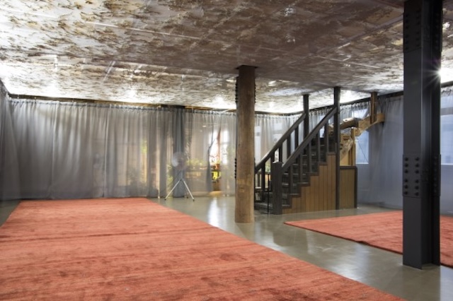 - 廣瀬智央《クールダウン》2021 年(リボーンアー トフェスティバルでのインスタレーション風景) ペルシャンギャッベ、ミント、寒冷紗 Photo: Tartaruga Ⓒ Satoshi Hirose, 2025